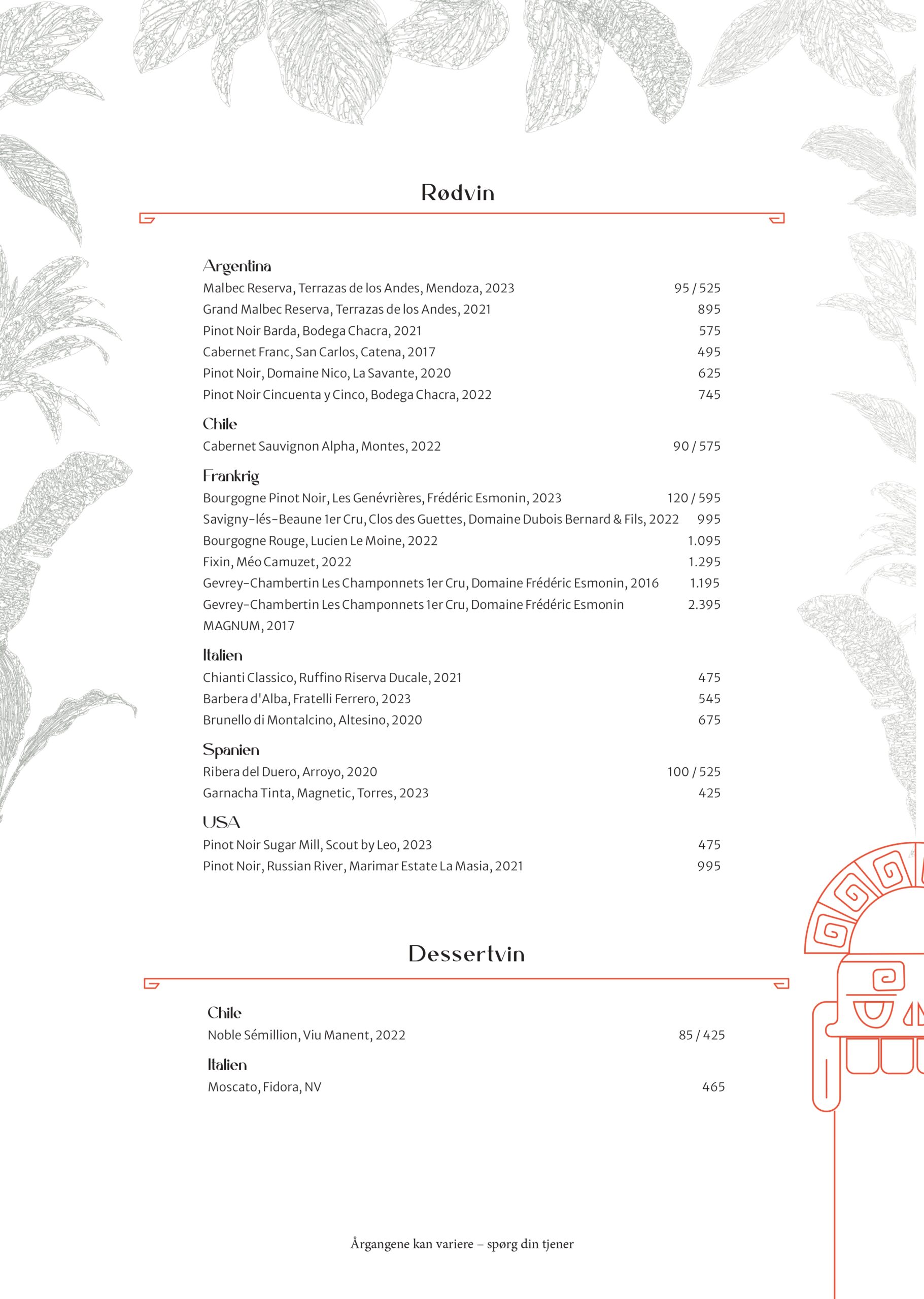 Vi serverer nedenstående menu til og med d. 15. marts 2026.
